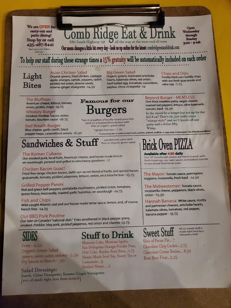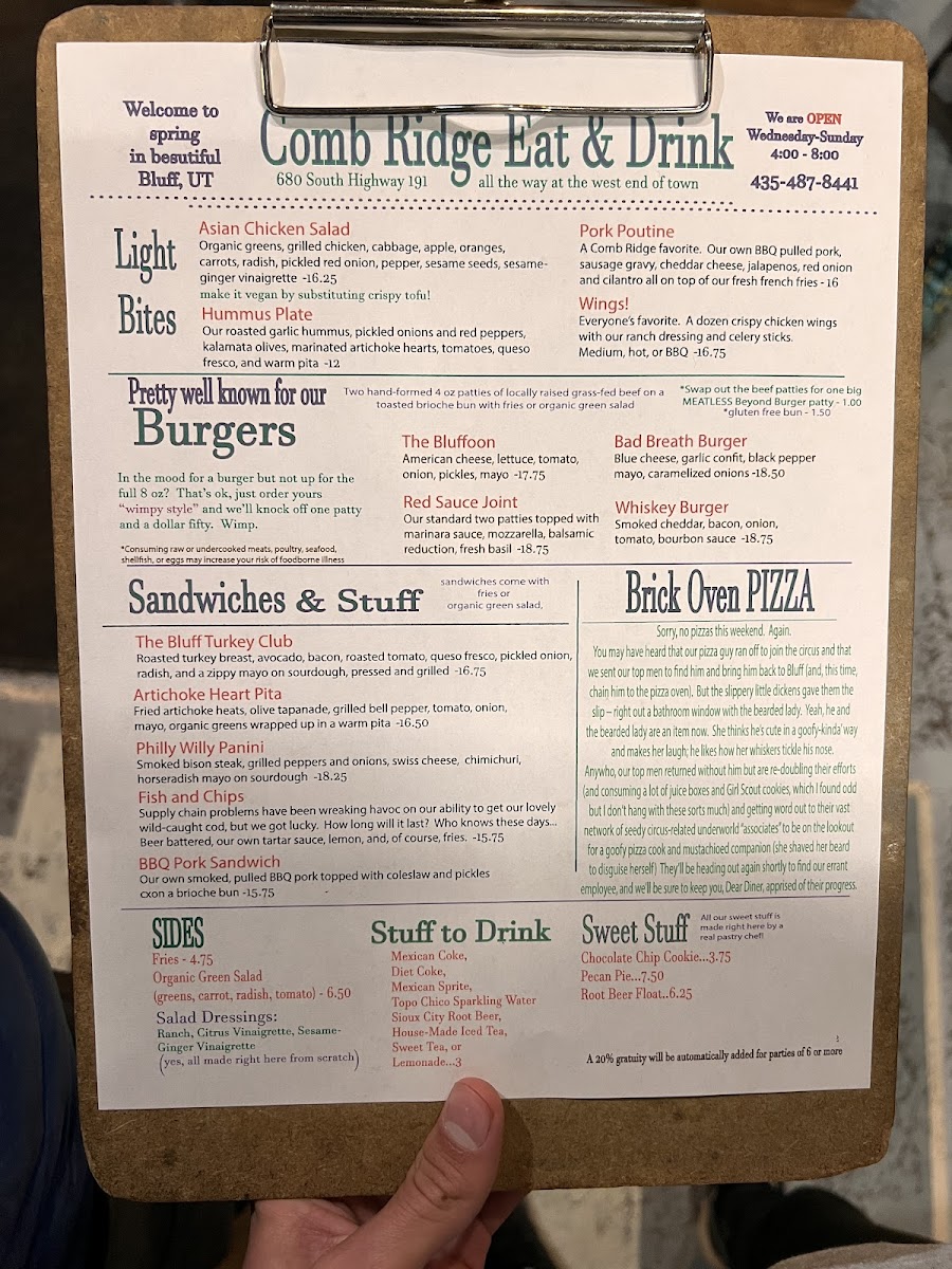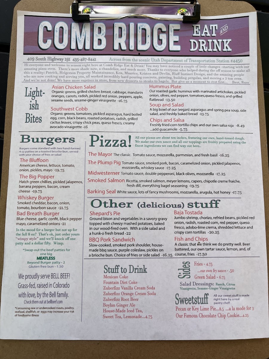 Comb Ridge Eat and Drink Menu (2025 Update)